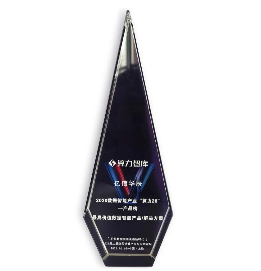 6月3日,由算力智庫主辦,中國信息通信研究院云計算與大數據研究所、隱私計算聯盟、隱私計算技術聯盟聯合主辦的2021第二屆隱私計算產業與應用論壇在上海圓滿收官。作為國內首個聚焦隱私計算領域的年度行業權威盛會,論壇上正式揭曉兼具專業影響力和產業指導力的數據智能權威榜單——2020年度數據智能產業“算力20”榜單,億信華辰榮獲2020最具價值的數據智能產品/解決方案大獎。