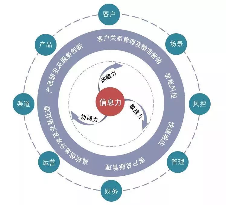 數字經濟時代對于企業而言意味著全新的挑戰和機遇,如何抓住數字經濟的本質,而不是停留在各種零碎的、華麗的詞藻堆砌,構建企業核心競爭力新的理論體系,指導企業探索一條適合自身條件的數字轉型之路,成為學術界和企業界的迫切期盼。 本文章針對數字經濟特點,既從學術層面構建了企業核心競爭力新的理論體系,也從管理實踐層面系統探討了企業該如何認知數字經濟的核心所在,以及具體的數字化轉型路徑。希望大家有所收獲。 翻天覆地的數字技術革命將人類社會帶入全新的數字經濟時代,并使得物質社會的運轉方式和特性發生了根本改變。社會非連續、跳躍式變化和高度不確定性成為這一時代的顯著特征,數字信息成為這一時代關鍵生產要素。有效獲取、控制和利用數字信息,進而降低或消除不確定性,是提升企業核心競爭力的關鍵。 數字經濟已成為全球新一輪產業競爭的制高點。2017年中國數字經濟規模就已達27.2萬億,占全年GDP的32.9%。 隨著產業與數字科技融合的日益加速,大數據、人工智能、云計算等新興數字化信息技術在應用領域的日臻成熟,企業不斷嬗變,向數字化、網絡化、智能化的方向加速演進,不斷重塑著自身的經營方式和競爭生態。 據IDC(International Data Corporation)報告顯示,全球1000強企業的67%、中國1000強企業的50%把數字化轉型作為企業戰略的核心要素之一。 面對洶涌而來的數字化浪潮,眾多企業感到措手不及,“創新者窘境”或“戰略迷?!背蔀槌B,他們想要加快數字化轉型卻又無從下手。 過去企業的核心競爭力如專利技術、組織運營、人力資源等都遭遇到嚴峻挑戰。在VUCA(Volatility易變性、Uncertainty不確定性、Complexity復雜性、Ambiguity模糊性)環境下,每個企業都在關注和重新審視自身的核心競爭力。 數字經濟時代企業的核心競爭力究竟是什么?該如何構建企業的核心競爭力以應對數字化時代的新挑戰?在尋找這些問題答案的過程中,我們逐漸發現,以信息技術為核心的新技術應用過程正在形成一種新的動力。 在數字時代,這種信息動力已逐步成為推動企業轉型和發展的核心驅動力,我們稱之為“信息力”。區別于企業其它核心能力,信息力具備高度動態性、交融性以及自我演進的能力,從而能夠幫助企業構建新的商業模式和生態系統,實現數字化轉型,為企業保持或形成新的競爭優勢。 01、何為信息力 信息力是在信息技術與實體經濟以前所未有的廣度和深度的交匯融合下,以數字信息為關鍵生產要素,驅動人類向數字化、網絡化、智能化發展的動力。它比工業革命以來的任何推動力都要強大,在為數字經濟帶來指數級增長的同時,永久改變著物質世界的運轉方式和運轉特性。 數字經濟時代背景下,企業加快獲得信息的速度,把握市場的力度,在高度不確定的市場環境中做出決策,并在時間與空間上圍繞信息力展開競爭。 數字時代非連續變化或者說是跳躍式變化的特征加劇了不確定性。而信息力的主導地位就表現在通過對數字化信息的及時獲取、有效控制和高效利用,降低或消除不確定性,并將數字化信息轉化為物質和能量,進而為企業構建持續發展的動力、持續盈利能力和品牌影響力等。 任何組織都是一個耗散系統,不斷與外部進行物質、能量的交換,以尋求發展壯大,而信息力使得這種交換更加快速、便捷、高效。在信息爆炸的現代社會,信息力存在于各種類型組織,如個人、企業、大眾媒體、政府機關等,只是作用強度和表現方式不同而已。 信息力的產生是數字科技快速發展和深度應用的必然結果。哈佛大學教授馬丁·韋茨曼(Martin Weitzman)認為:一種成熟經濟的長期增長是受技術進步所支配的。信息力以不斷發展的前沿科技為動力,著力于產業和數字科技的深度融合,推動數字化、網絡化、智能化,實現人、機、物三元世界(Cyber World)的交融,進而降低信息成本、增強發展質效,并帶來產業模式的變化。 隨著數字技術內涵和應用的廣度和深度不斷拓展,企業所提供的產品和服務的方式正發生根本改變,主要體現在邊際成本的快速降低和產品質量的大幅提升上。 與傳統核心競爭力如專利技術、組織運營、人力資源等不同的是,信息力具備顯著的動態性。由于信息力的形成要基于外部環境和顧客的大數據,所以信息力本身就具有自組織能力,不斷更新和疊代,從而擁有了動態演進特點。 相較于企業傳統的核心競爭力會因環境的變化消失或產生剛性缺陷,信息力的動態性能夠在一定程度上避免這個問題,它可以使企業通過可持續創新活動,獲得先動優勢,及時適應動態的市場環境,從而在VUCA環境中不斷改進、重構并提升企業的市場競爭力。 02、信息力的三維原子測度 信息力可以從洞察力、協同力和敏捷力三個維度進行測度。基于這三種原子能力,可以構建一個風扇模型,如圖1所示。 信息力風扇模型 1.洞察力 洞察力是指企業基于對數據的聚集、融合和分析而獲得的對信息的判斷能力和對未來的預見能力。洞察力體現了信息力的深度。它可以基于大數據分析,幫助企業進行預測和決策,感知客戶行為和市場環境變化,進而洞悉市場趨勢,把握商機。 2.協同力 協同力是指企業在數字化運作過程中將內外部信息通過各種渠道進行相互傳遞、流動和共享,從而形成的跨所有客戶觸點進行渠道整合和接入的能力。協同力體現了信息
