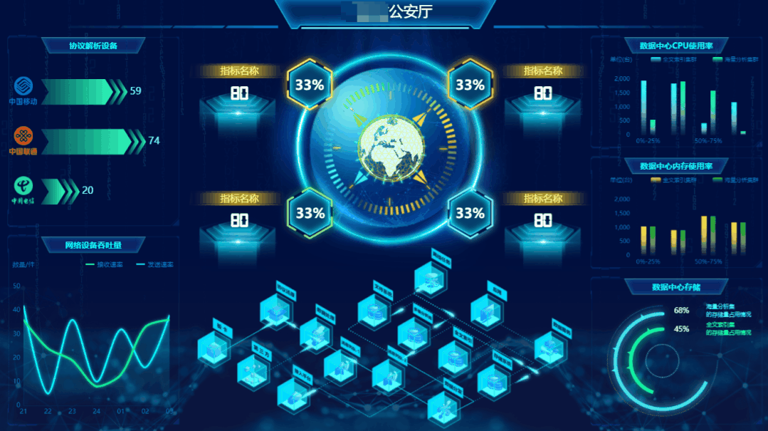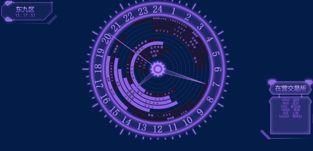 04 大屏可視化組件--輔助圖表 輔助圖表通常圍繞視覺中心的四周,起到錦上添花的作用,用來呈現(xiàn)次要指標(biāo),從各種維度進(jìn)一步細(xì)化核心指標(biāo)。 不需要設(shè)置任何數(shù)據(jù),實(shí)時(shí)顯示的當(dāng)下時(shí)間,并且以時(shí)鐘表盤的方式,古典有韻味。